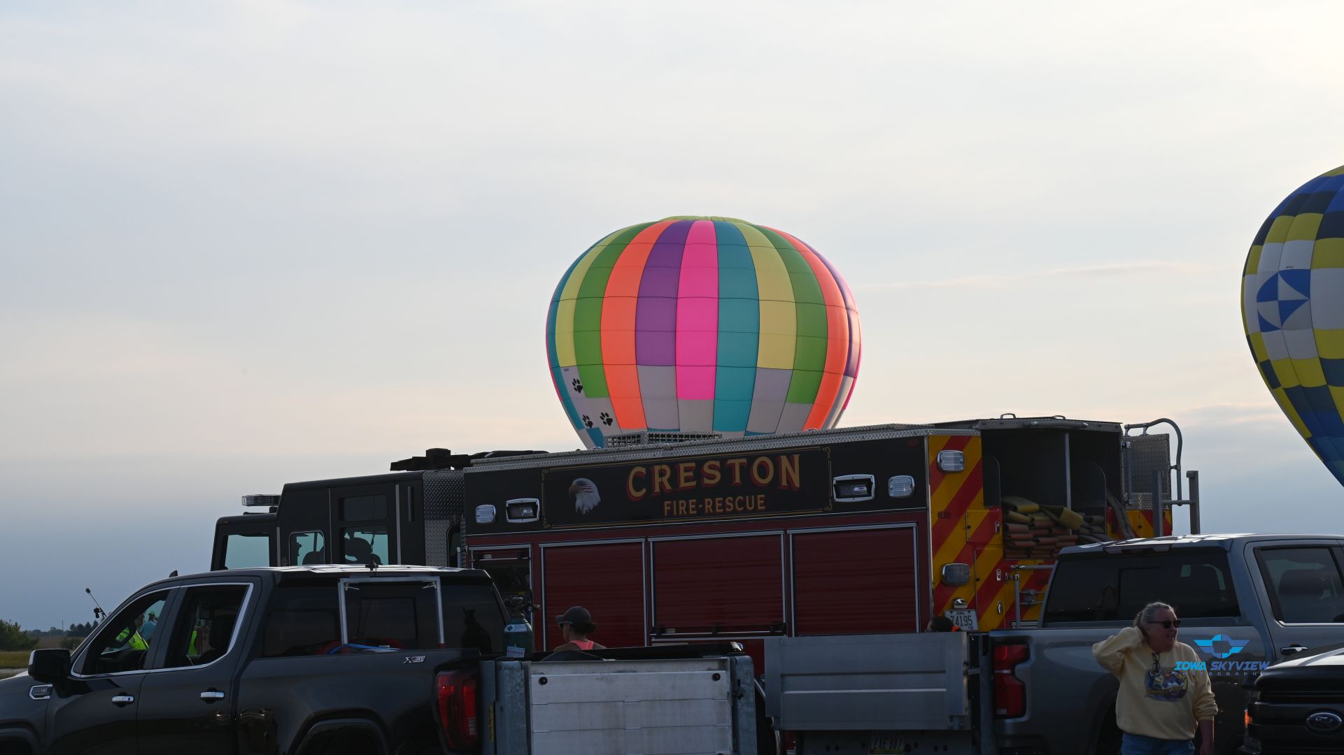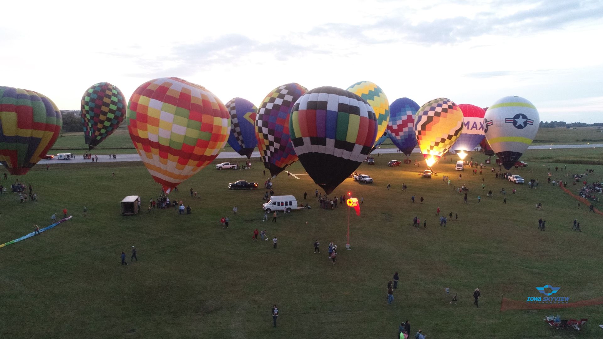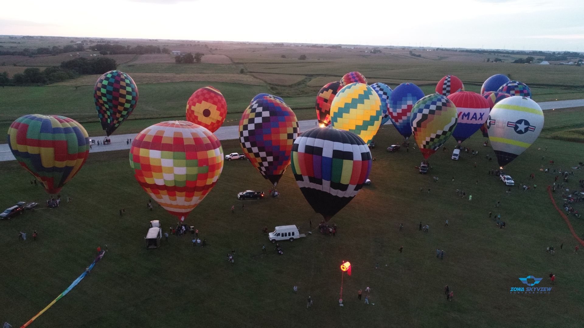 This year’s Balloon Days was a mixed bag. Friday night’s fun flight faced high winds. Saturday Morning had wind and rain. Saturday evening and night glow worked out nicely. Skies cleared up beautifully for night glow. Unfortunately, Sunday morning’s was fogged in.